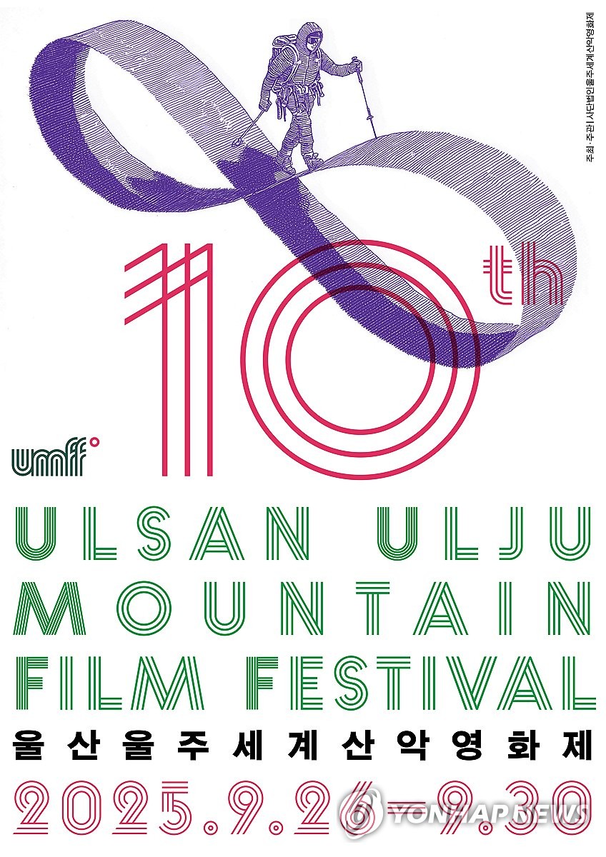 | ▲ 제10회 울산울주산악영화제 공식 포스터 (울산=연합뉴스) 오는 26일 개막하는 제10회 울산울주세계산악영화제 공식 포스터. 공식 포스터는 무한대 기호(∞)로 형상화된 산봉우리를 오르는 산악인의 모습을 표현하고 있다. 2025.9.24 [울산울주세계산악영화제 제공.재판매 및 DB 금지] young@yna.co.kr |