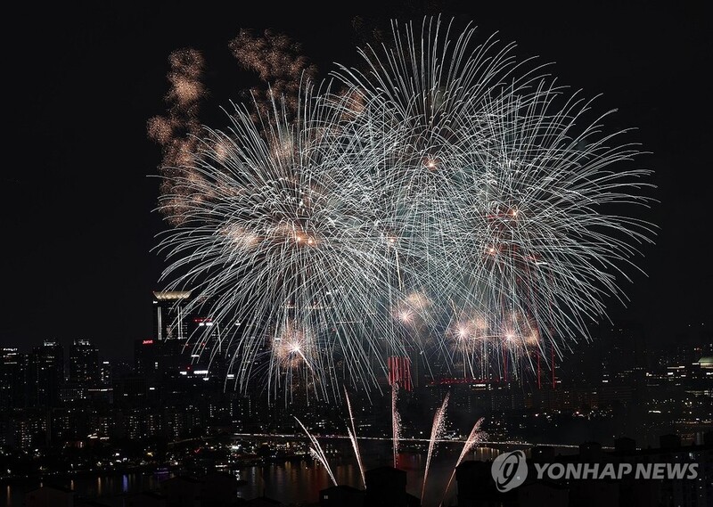 Held under the theme "Light Up Together," the Seoul International Fireworks Festival showcased performances by teams from South Korea, Italy and Canada at Han River Park in Yeouido, according to organizer Hanwha Group.