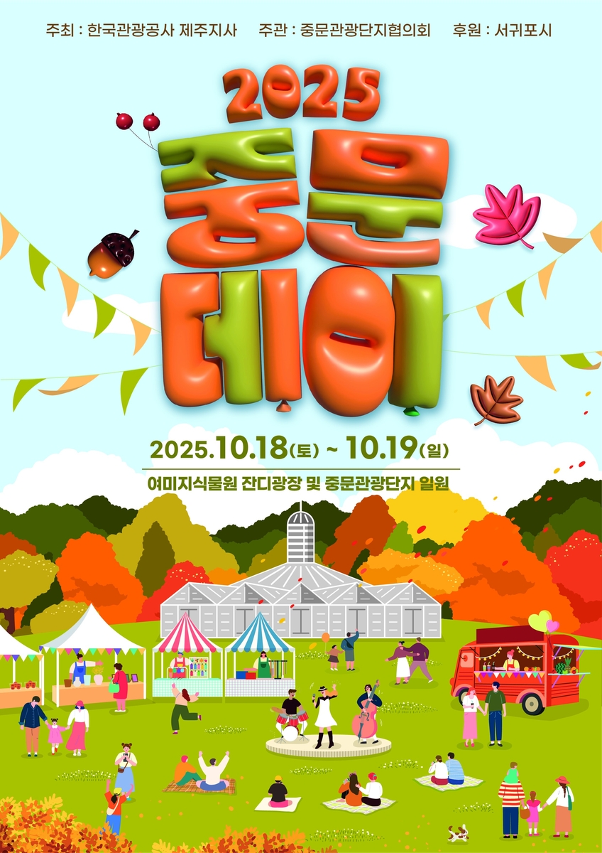 (제주=연합뉴스) 백나용 기자 = 제주관광공사와 한국관광공사 제주지사·중문관광단지협의회는 오는 18일과 19일 양일간 서귀포시 여미지식물원 내 잔디광장에서 '2025 중문데이'를 개최한다고 16일 밝혔다.