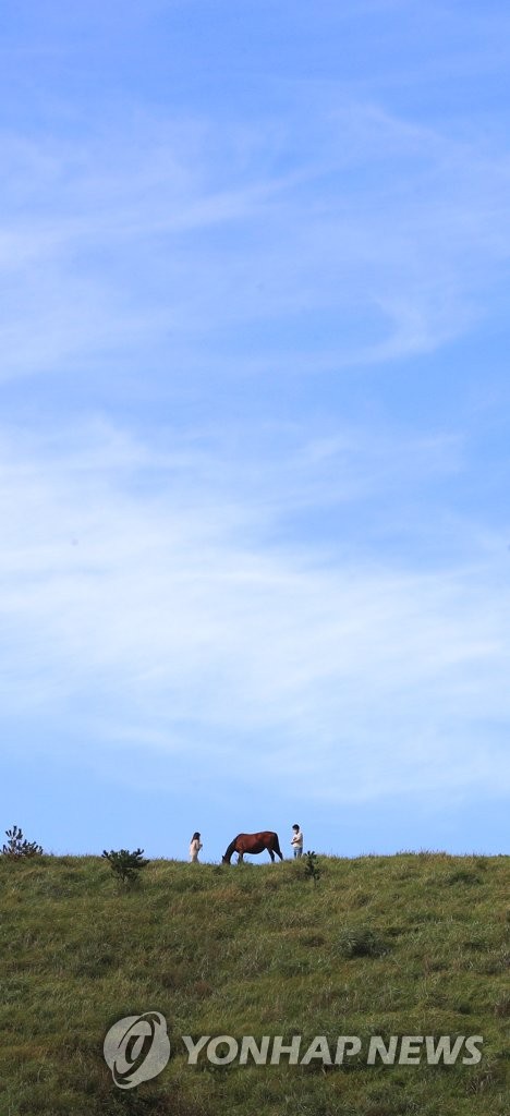(제주=연합뉴스) 백나용 기자 = '걷기 좋은 계절' 가을이 되면 제주 오름과 숲길 곳곳에는 탐방객 발길이 늘어난다.