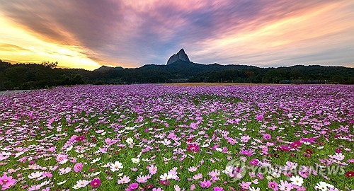 | ▲ 마이산 석양과 코스모스 [진안군 제공. 재판매 및 DB 금지] |