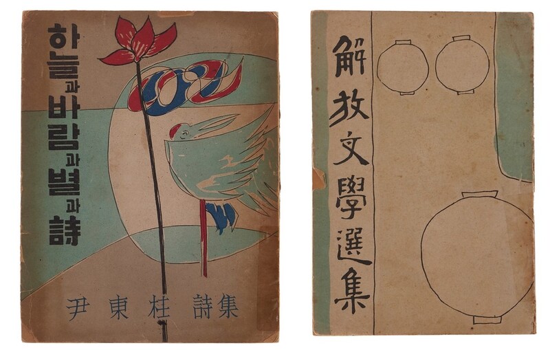 | ▲ 주요 전시품 왼쪽부터 '하늘과 바람과 별과 시 : 윤동주시집', '해방문학선집' [국립중앙도서관 제공. 재판매 및 DB 금지] |