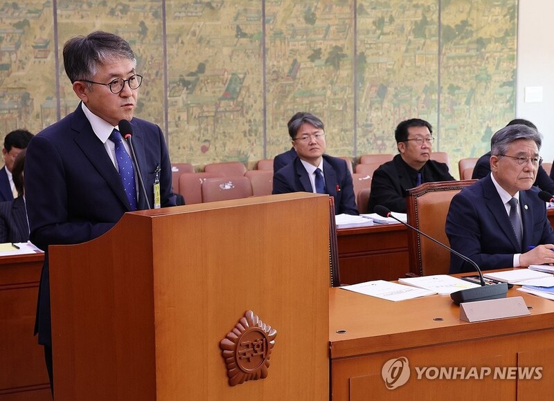 | ▲ 답변하는 이재필 궁능유적본부장 (서울=연합뉴스) 서명곤 기자 = 이재필 궁능유적본부장이 16일 서울 여의도 국회에서 열린 2025년도 국가유산청 등에 대한 문화체육관광위원회 국정감사에서 김건희 여사의 종묘 차담회 의혹과 관련한 더불어민주당 민형배 의원의 질의에 답하고 있다. 2025.10.16 seephoto@yna.co.kr |