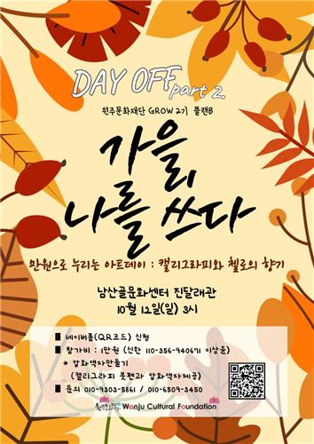 원주문화재단이 10월 12일 남산골문화센터 진달래관에서 'DAY OFF part 2. - 가을, 나를 쓰다'를 개최한다.