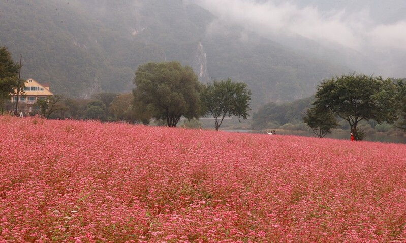 [픽! 영월] 동강 변 가을 수놓은 붉은 메밀꽃 장관
