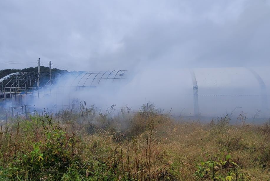 (인천=연합뉴스) 황정환 기자 = 추석 당일인 지난 6일 인천 한 비닐하우스에서 불이 나 1명이 화상을 입었다.