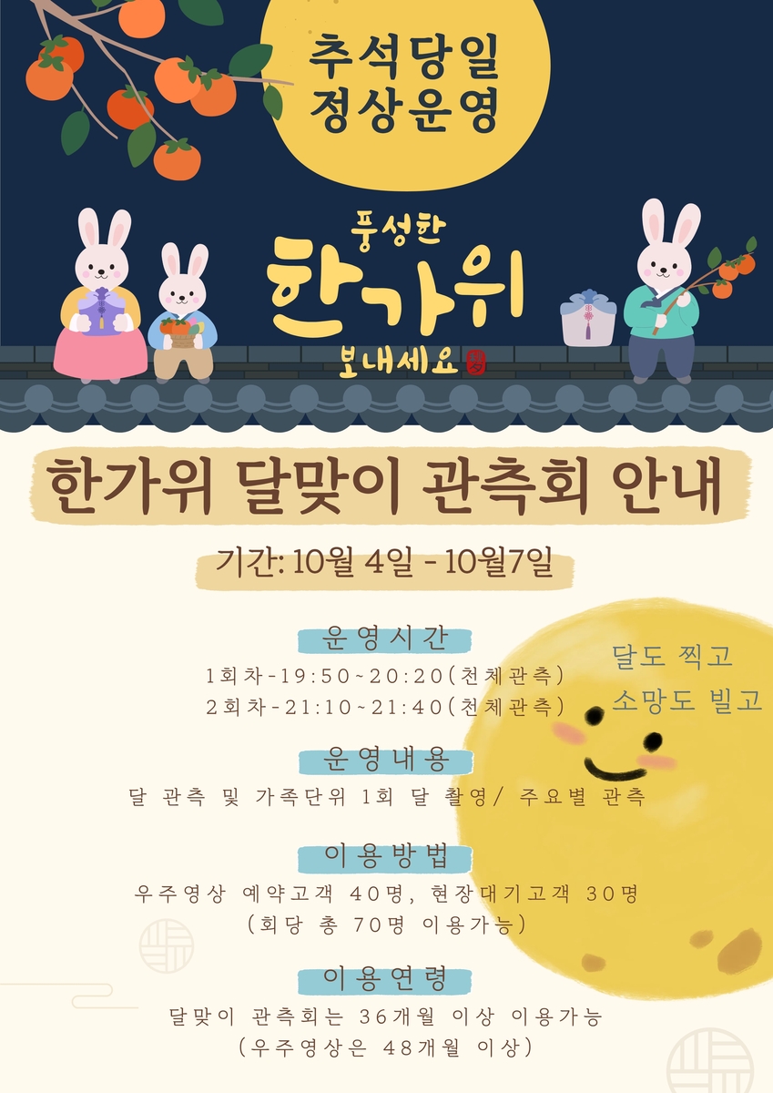 김해천문대는 4일부터 7일까지 매일 스마트폰으로 달을 찍고 소망을 비는 '한가위 달맞이 관측회'를 한다.