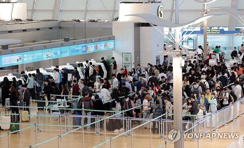 | ▲ 북적이는 인천공항 (영종도=연합뉴스) 김인철 기자 = 추석 연휴를 앞둔 2일 인천국제공항 제1여객터미널에서 여행객들이 탑승 수속을 위해 줄을 서고 있다. 2025.10.2 yatoya@yna.co.kr |
