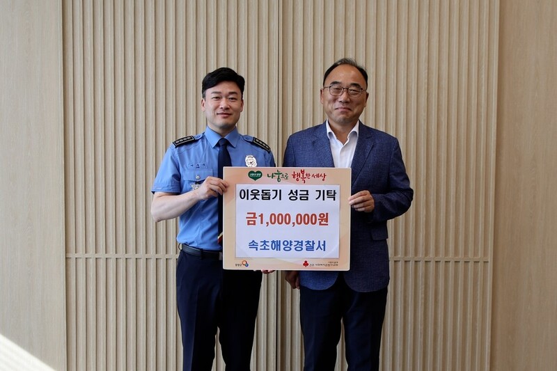 | ▲ 양양군에 성금 기탁하는 속초해경 [속초해양경찰서 제공. 재판매 및 DB 금지] |