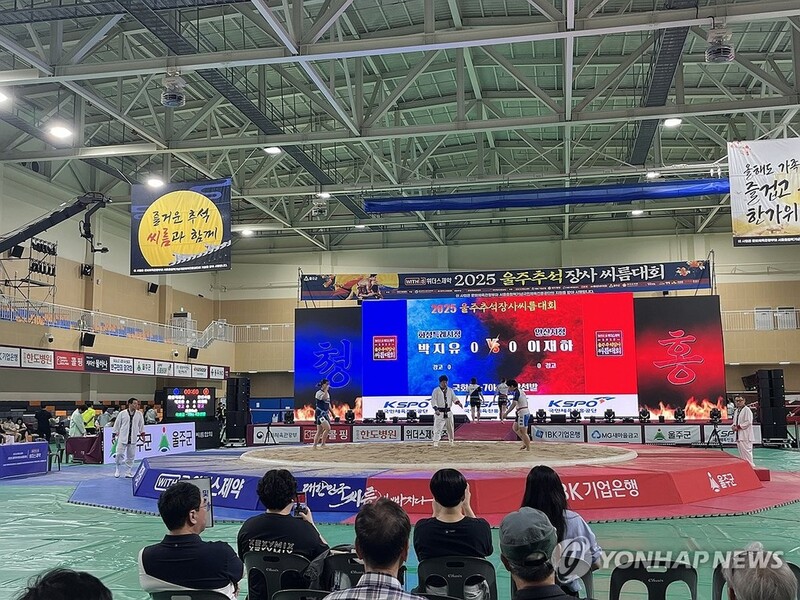 | ▲ '2025 울주 추석장사씨름대회' 개막 (울산=연합뉴스) 추석 명절을 맞아 2일부터 8일까지 울산 울주종합체육센터에서 '위더스제약 2025 울주 추석장사씨름대회'가 열린다. 2025.10.2 [울주군 제공.재판매 및 DB 금지] young@yna.co.kr |
