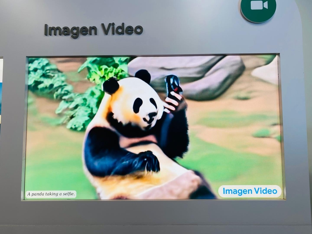 | ▲ 구글 인공지능이 만들어낸 '판다의 셀카' 동영상 (뉴욕=연합뉴스) 강건택 특파원 = 2일(현지시간) 미국 뉴욕시 구글 피어57 캠퍼스에서 열린 '구글 AI 이벤트'에 전시된 구글 인공지능(AI) 기반 '이매젠 비디오'가 만들어낸 동영상. '셀카 찍는 판다'라는 텍스트 명령에 따라 생성된 작품이다. 2022.11.2. firstcircle@yna.co.kr |