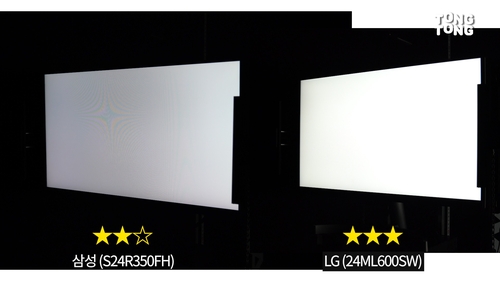 흰색과 검은색 화면에서 밝기가 얼마나 균일한지를 종합적으로 평가해봤습니다. 그 결과, 육안으로도 얼룩덜룩함이 확연하게 드러난 제품이 있었는데요.