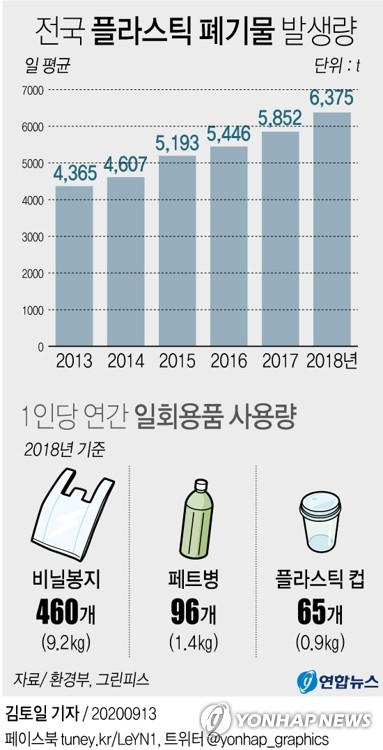 신종 코로나바이러스 감염증(코로나19) 발발 이후 배달 수요가 증가하고 일회용품 사용 규제가 완화되면서 연간 일회용품 사용량이 급증한 데 따른 것으로 풀이된다.