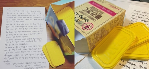 | ▲ 소비자가 제조 업체에 보낸 플라스틱 뚜껑과 손편지 [독자 제공. 재판매 및 DB 금지] |