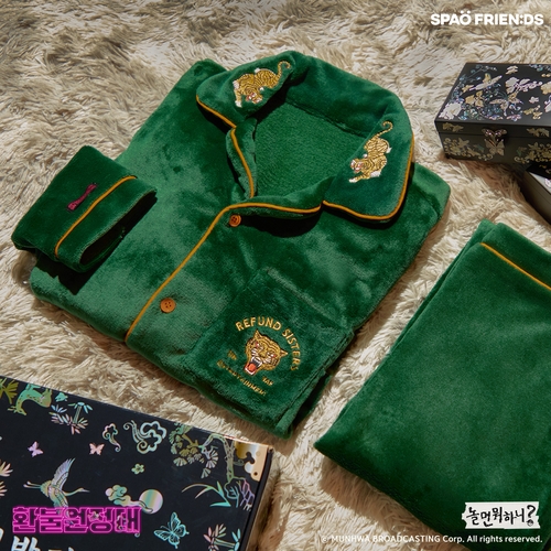 협업 상품은 수면 잠옷 2종으로, 각각 호랑이 자수와 '리펀드 시스터스(REFUND SISTERS)' 문구 등으로 꾸며졌다.