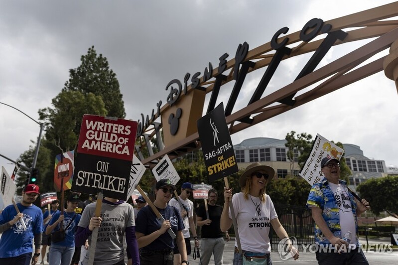 | ▲ 월트디즈니 스튜디오 앞에서 파업 시위 중인 미국작가조합(WGA) [EPA 연합뉴스 자료사진. 재판매 및 DB 금지] |