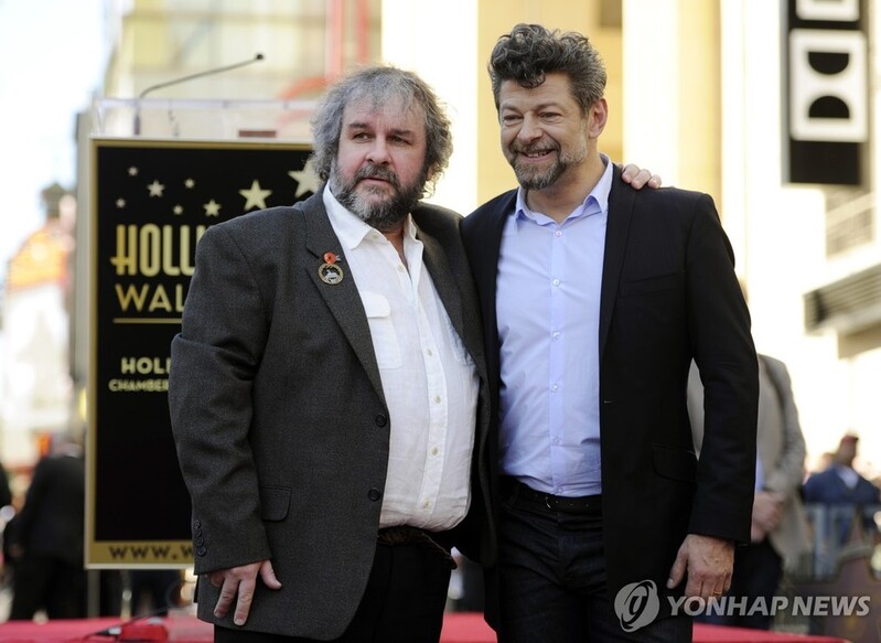 | ▲ '반지의 제왕' 시리즈의 피터 잭슨 감독(왼쪽)과 배우 앤디 서키스 [AP 연합뉴스 자료사진. 재판매 및 DB 금지] |