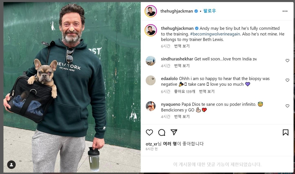 잭맨은 지난 5일(현지시간) 인스타그램에 올린 영상에서 "조직 검사 결과가 음성으로 나왔다"며 "피부의 기저 세포가 아직 남아 있긴 하지만, 이것은 피부암 세계에서 가장 덜 위험한 것으로 알려져 있다"고 말했다.