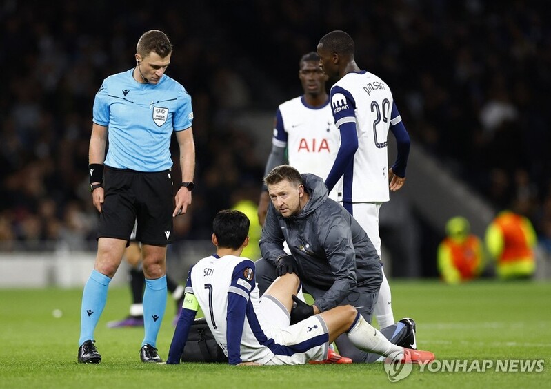 후반 23분 3-0을 만드는 도미닉 솔란케의 득점으로 이어지는 오른발 강슛을 시도한 직후 손흥민은 몸 상태에 이상을 느꼈는지 주저앉은 채 벤치를 바라봤다.