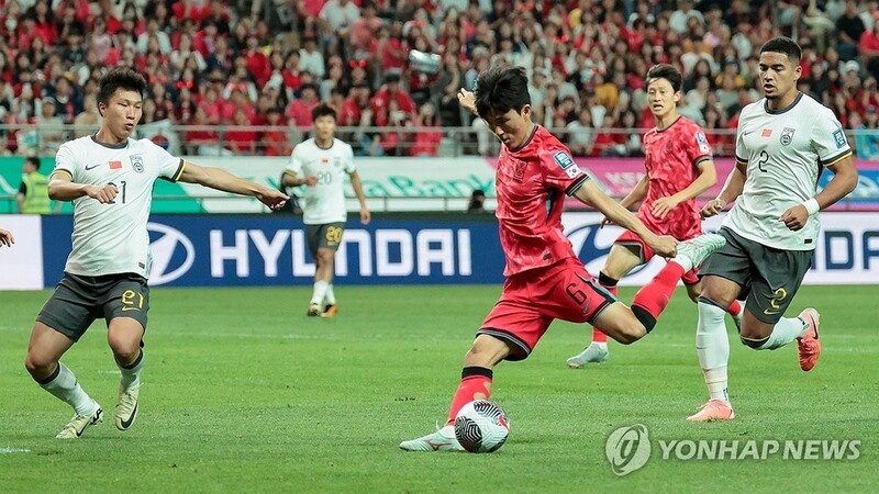 | ▲ 황인범의 강슛! (서울=연합뉴스) 김인철 기자 = 11일 서울월드컵경기장에서 열린 2026 북중미 월드컵 아시아 지역 2차 예선 C조 6차전 한국과 중국의 경기. 황인범이 중국 수비를 앞에 두고 슛을 시도하고 있다. 2024.6.11 yatoya@yna.co.kr |