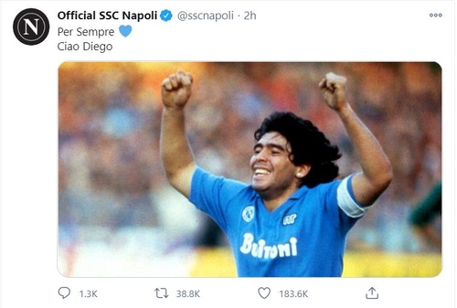 마라도나가 1984∼1991년 뛰었던 이탈리아 세리에A의 나폴리는 고인의 별세 소식이 도시와 팀 모두에 "엄청난 충격"이라며 "우리 마음에 영원할 것"이라고 밝혔다.
