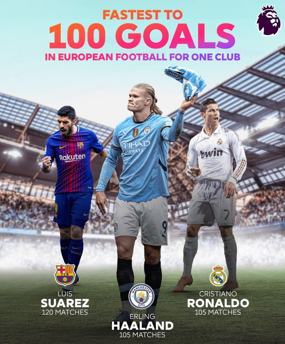 호날두가 유럽 5대 리그 단일 클럽 최단 경기 100호골 대기록을 세운 이후 13년이 지나고 홀란은 호날두의 대기록과 어깨를 나란히 하며 '괴물 공격수'의 위용을 과시했다.