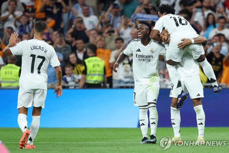 (서울=연합뉴스) 이의진 기자 = 비니시우스 주니오르, 킬리안 음바페 등 주포들이 득점포를 가동한 스페인 프로축구 명문 레알 마드리드가 공식전 4연승·8경기 무패 행진을 달렸다.
