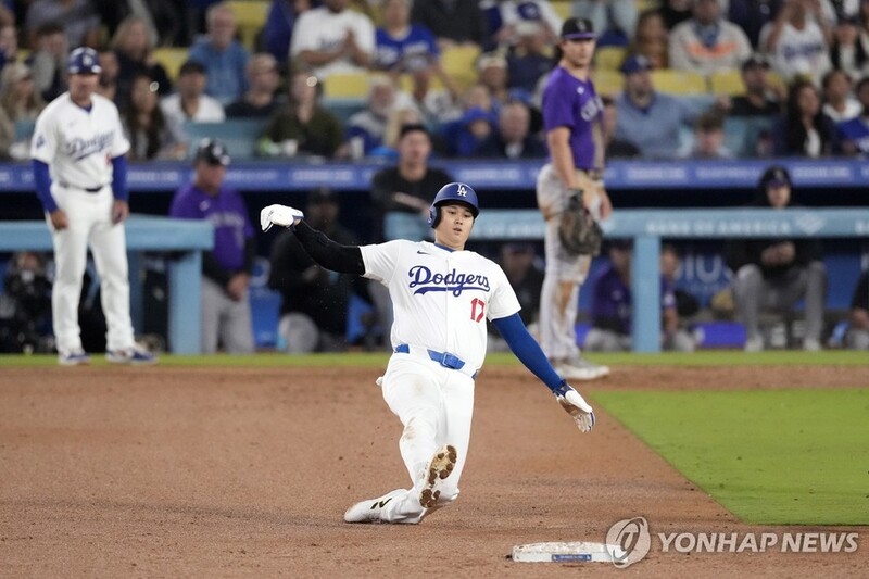 오타니는 21일(한국시간) 미국 캘리포니아주 로스앤젤레스 다저스타디움에서 열린 2024 미국프로야구(MLB) 콜로라도 로키스와 홈경기에 1번 지명타자로 선발 출전해 4타수 3안타(1홈런) 2타점 2득점 1도루로 활약했다.