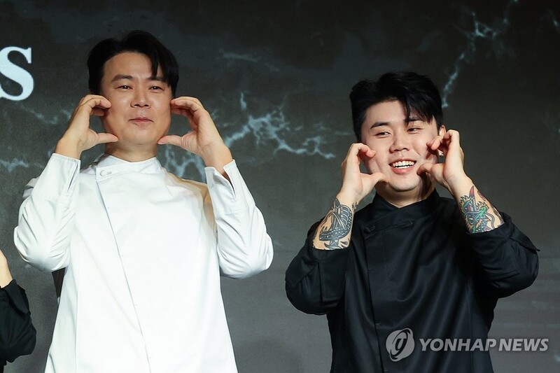 | ▲ 포즈 취하는 최현석-나폴리 맛피아 (서울=연합뉴스) 류효림 기자 = 넷플릭스 '흑백요리사'에 출연한 요리사 최현석과 나폴리 맛피아가 7일 서울 마포구 호텔 나루 서울 엠갤러리에서 열린 넷플릭스 '흑백요리사: 요리 계급 전쟁' 기자간담회에서 포즈를 취하고 있다. 2024.10.7 ryousanta@yna.co.kr |