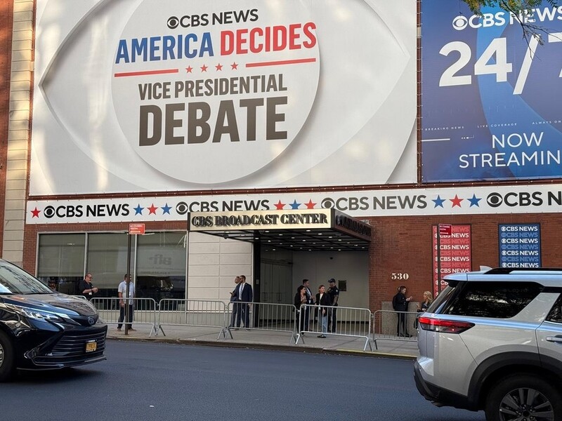 美 CBS 맨해튼 방송센터, 부통령 후보 TV토론 앞두고 경계 '삼엄'