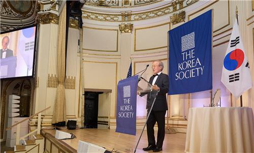 (서울=연합뉴스) 차민지 기자 = 휠라홀딩스[081660]는 지난달 30일 미국 뉴욕에서 열린 '2024 코리아소사이어티 연례 만찬'에서 윤윤수 회장이 전 세계 패션업계 인사들 중에서 처음으로 밴 플리트상을 수상했다고 2일 밝혔다.