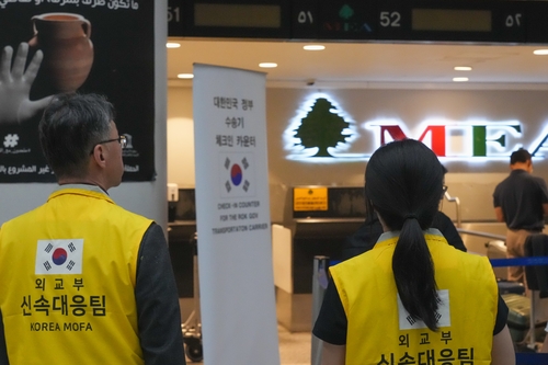 | ▲ This image, provided by the foreign ministry on Oct. 5, 2024, shows officials assisting South Korean nationals at an airport in Beirut, Lebanon, before boarding a military airplane to return home. (PHOTO NOT FOR SALE) (Yonhap) |