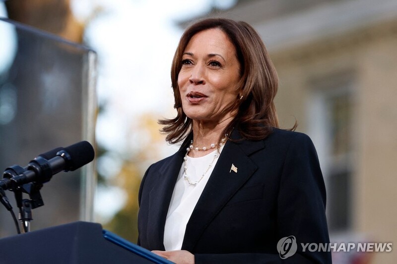 ▲ U.S. Vice President Kamala Harris speaks during a campaign event at Ripon College in Ripon, Wisconsin, on Oct. 3, 2024 in this photo released by AFP. (Yonhap)