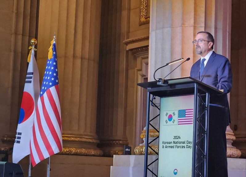 | ▲ Acting Under Secretary of State for Political Affairs John Bass speaks during an event celebrating the Korean National Day and Armed Forces Day in Washington on Oct. 2, 2024. (Yonhap) |