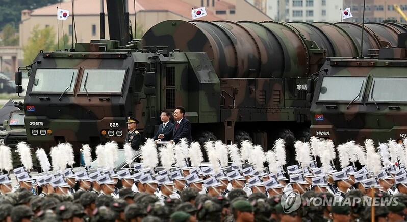 SEONGNAM, South Korea, Oct. 1 (Yonhap) -- South Korea showcased its most powerful missile for the first time Tuesday as it marked Armed Forces Day in an apparent warning against North Korea's nuclear and missile threats.