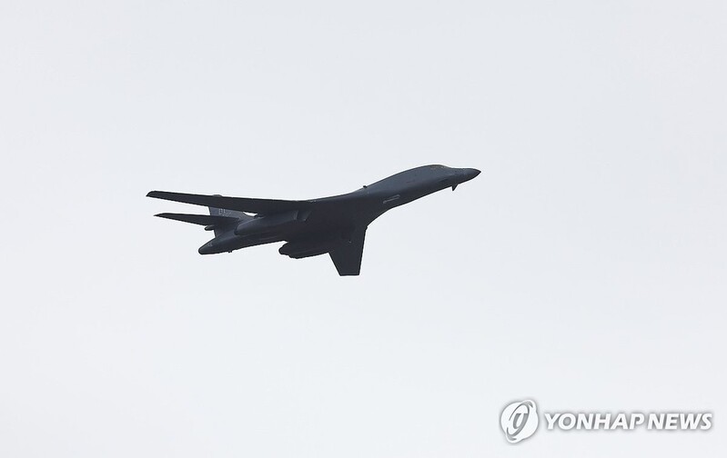 In another show of force, a U.S. B-1B heavy bomber flew over the air base, alongside two F-15K jets, in a display of the U.S. security commitment to South Korea. North Korea earlier warned of taking a "corresponding" measure against the deployment of U.S. strategic assets.