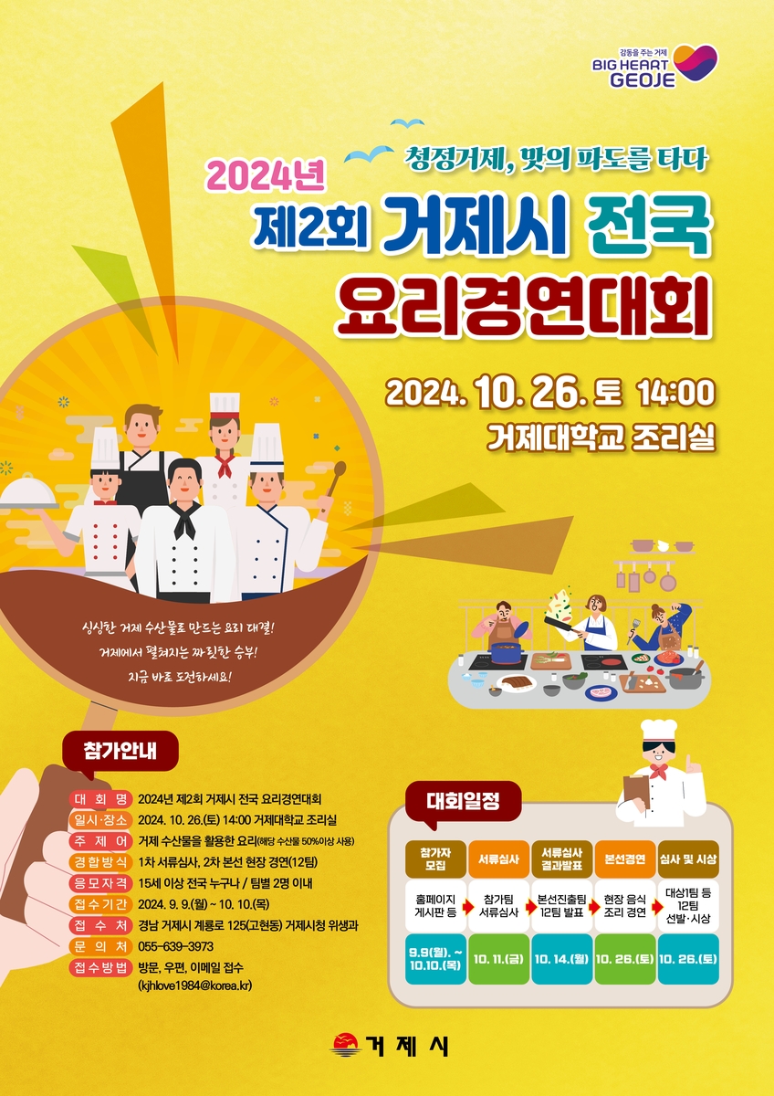 본선 진출자의 레시피는 요리책으로 제작돼 참가팀과 한국외식업중앙회 거제지부 등에 배포된다.