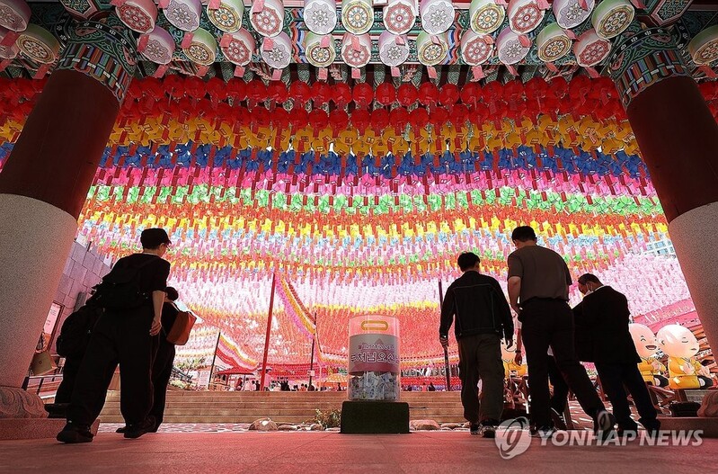 | ▲ Lotus lanterns adorn the compound of Jogye Temple in central Seoul in this photo taken May 14, 2024, the day prior to Buddha's Birthday. (Yonhap) |