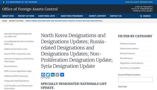 | ▲ This image, captured from the Treasury Department's Office of Foreign Assets Control, shows an update on new sanctions related to North Korea and Russia. (PHOTO NOT FOR SALE) (Yonhap) |