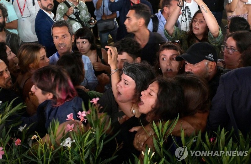 | ▲ 제80회 베네치아영화제에서 우디 앨런 감독 초청에 반발하는 시위대 [EPA=연합뉴스. 재판매 및 DB 금지] |