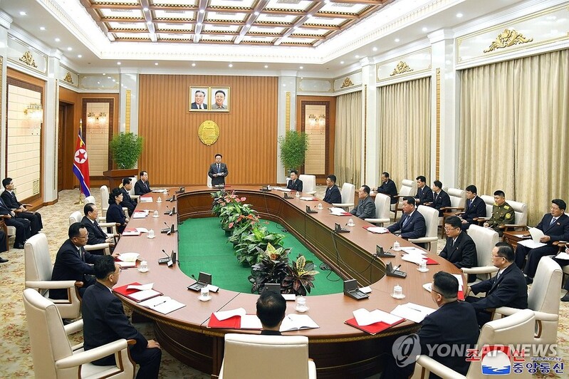 | ▲ This photo, carried by North Korea's official Korean Central News Agency on Sept. 16, 2024, shows North Korean members of the Standing Committee of the Supreme People's Assembly (SPA) holding a meeting the previous day to unanimously decide to convene the 11th session of the 14th SPA on Oct. 7. (For Use Only in the Republic of Korea. No Redistribution) (Yonhap) |