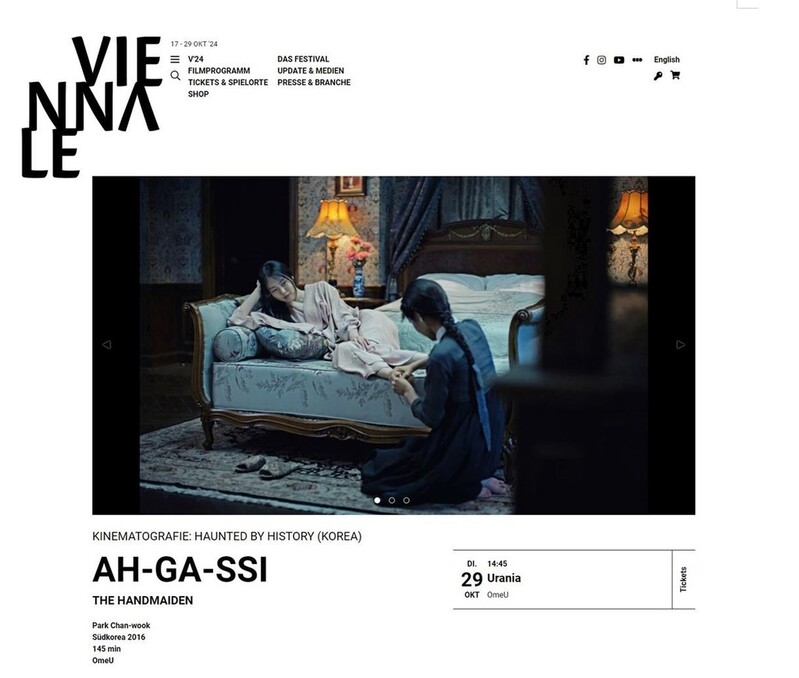 | ▲ 오스트리아 빈 국제영화제 한국영화 특별전 상영작 '아가씨' 안내 페이지 [빈 국제영화제 홈페이지 캡처. 주오스트리아 한국문화원 제공. 재판매 및 DB 금지] |