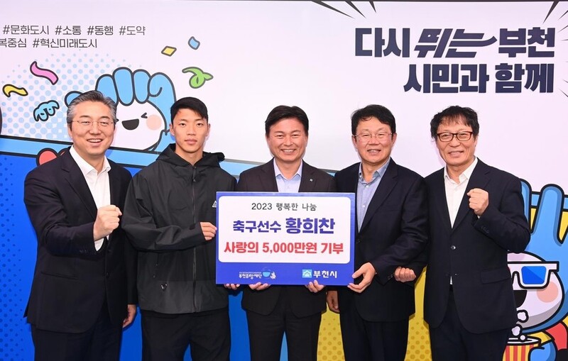 조용익 부천시장은 "황희찬 선수가 보여주는 부천 사랑은 시민의 자부심이자 희망"이라며 "기부금은 오늘 내린 첫눈처럼 따뜻한 선물이 됐다"고 답했다.