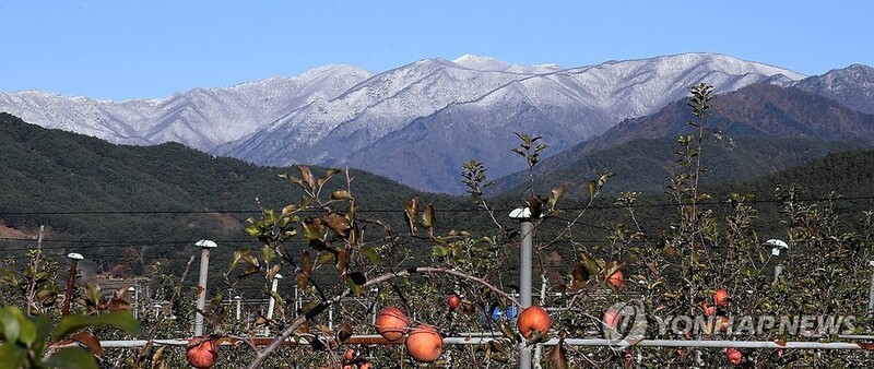 | ▲ 가을 넘어 '첫눈' (서울=연합뉴스) 17일 경남 거창군 북상면 남덕유산 능선이 밤사이 내린 첫눈으로 하얀 모습을 하고 있다. 2023.11.17 [거창군 제공. 재판매 및 DB 금지] photo@yna.co.kr |