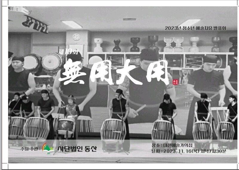 17일 사단법인 동산에 따르면 이 단체의 위탁 대안교육 대표 프로그램으로 청소년 예술 치유 발표회인 '무용대용'(無用大用) 공연이 전날 대전예술가의집에서 열렸다.