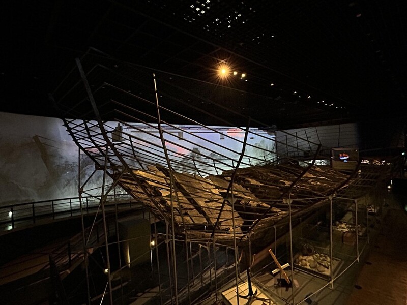 | ▲ 한국 최초의 수중발굴 보물선 '신안선' (목포=연합뉴스) 김예나 기자 = 전남 목포 국립해양문화재연구소 해양유물전시관에 전시된 신안선 모습. 신안선은 1323년 중국을 떠나 일본으로 가다 한반도 남서쪽 해안에서 침몰한 것으로 추정되는 배로, 유물 2만7천여 점이 나와 한국 수중 발굴사에서 가장 중요한 일로 꼽힌다. 지난달 28일 전시실에서 촬영한 사진. 2023.11.17 yes@yna.co.kr |