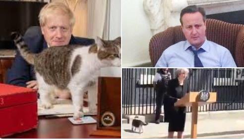 래리의 트위터에는 이날을 기념해 데이비드 캐머런, 테리사 메이에 이어 현재 보리스 존슨 총리까지 래리가 함께 한 총리 3명의 사진이 올라왔다.