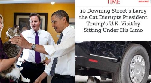 버락 오바마 전 미국 대통령에게는 바로 가까워졌지만 도널드 트럼프 전 대통령이 왔을 때는 영국 곳곳에서 시위가 벌어진 것과 일맥상통한 듯이 차 아래에서 잠을 잤다.