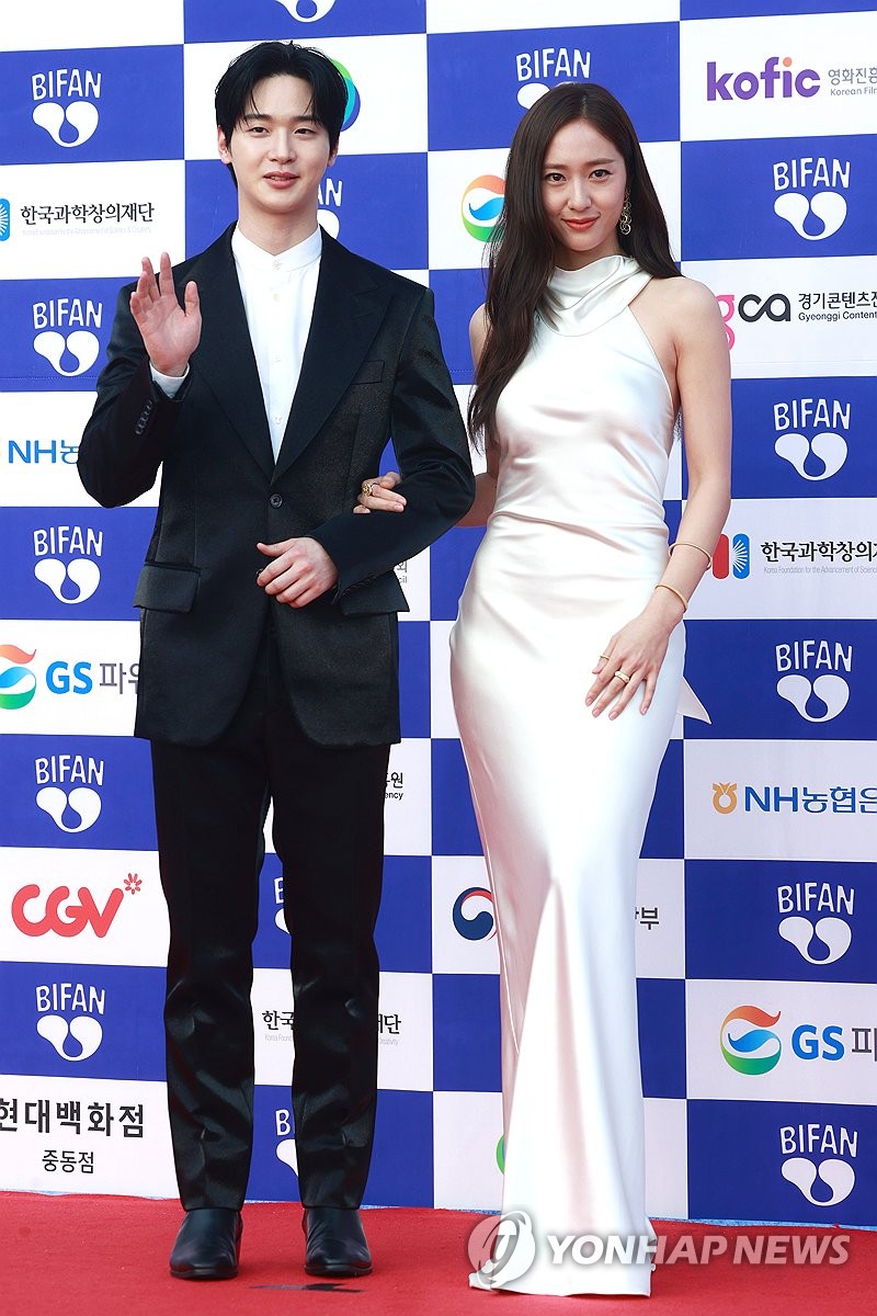 | ▲ 부천국제영화제 개막식 사회 맡은 장동윤·정수정 (부천=연합뉴스) 진연수 기자 = 배우 장동윤(왼쪽)과 정수정이 4일 오후 경기도 부천시 부천아트센터에서 열린 제28회 부천국제판타스틱영화제(BIFAN) 개막식 레드카펫 행사에서 포즈를 취하고 있다. 2024.7.4 jin90@yna.co.kr |
