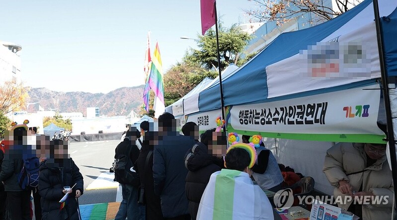 | ▲ 경남퀴어문화축제를 즐기는 참가자들 (창원=연합뉴스) 정종호 기자 = 25일 경남 창원시 성산구 롯데마트맥스 옆 중앙대로에서 열린 제3회 경남퀴어문화축제에서 참가자들이 행사장에 마련된 부스를 구경하고 있다. 2023.11.25 jjh23@yna.co.kr |